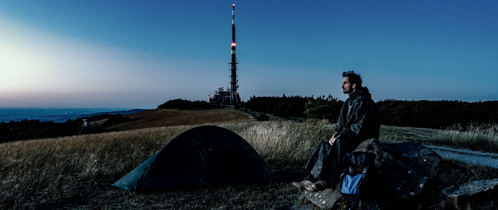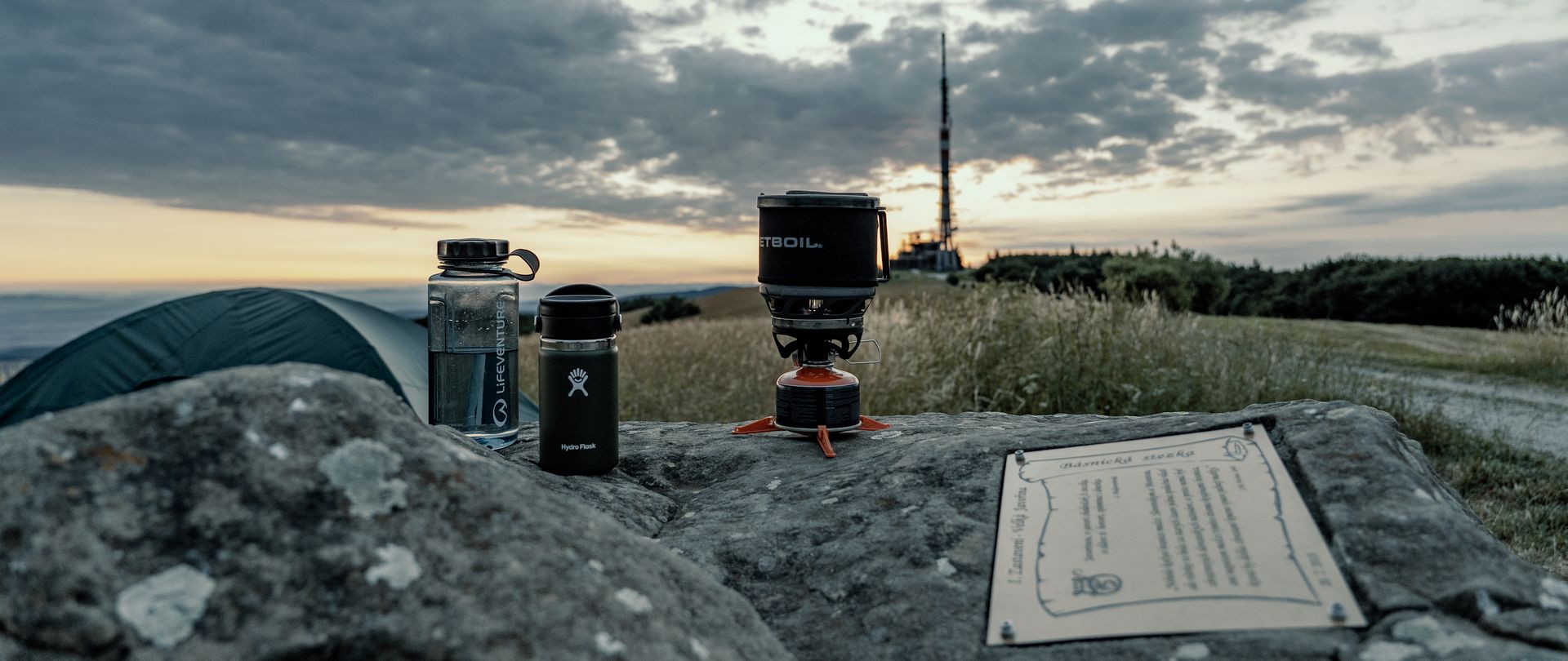 Rozhodně jsem chtěl zvolit lokalitu jižně od vysílače, abych měl výhled na Česko. Z pozice severní je výhled na Slovensko. Chtěl jsem tedy využít zjevně často používané tábořiště až za Pamätníke česko-moravsko-slovenskej vzájomnosti, ale bylo již obsazené. Původně jsem měl za to, že tam je parta mladých. Ráno jsem ale zjistil, že šlo jen o jednoho mladého muže se psem. A nebo ti mladí utekli dříve, než jsem se probudil.
